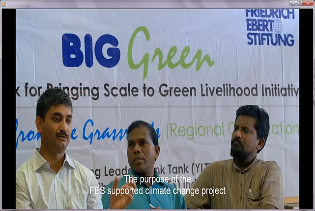 FES working group on Climate Change (under the International Department on Sustainability) has the broad objective of shaping climate policy in a socially just way. FES Big Green Initiative intends to inform development and livelihoods practitioners about Scale Up Framework which can help them bring scale to local initiatives to address and minimize the effects of climate change. The process entails long term intervention, proactive planning, optimal use of available resources which would help maintain a balance between aspirations and resources. This would be accomplished at two levels- a) Engaging with policy shapers to influence livelihood and environmental initiatives. B) Familiarizing Green Champions, who are implementing Green Livelihood Initiatives across India, with best practices as enunciated in Scale Up Framework.